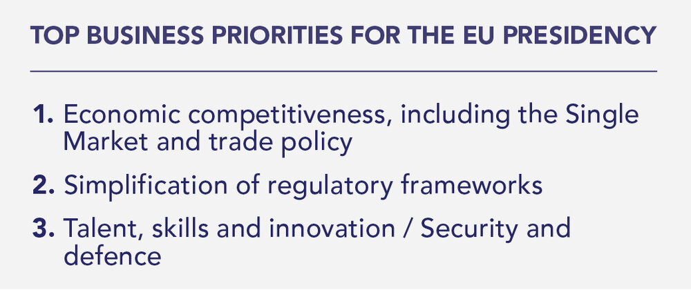 Advancing economic competitiveness, progressing regulatory simplification and supporting talent and skills, as well as security and defence, emerged as the top priorities for business when it comes to Ireland’s EU Presidency.
